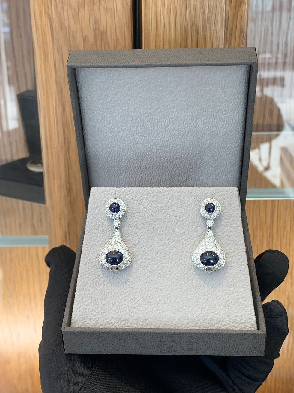 18k Gold Blue Sapphire Diamond Earrings
